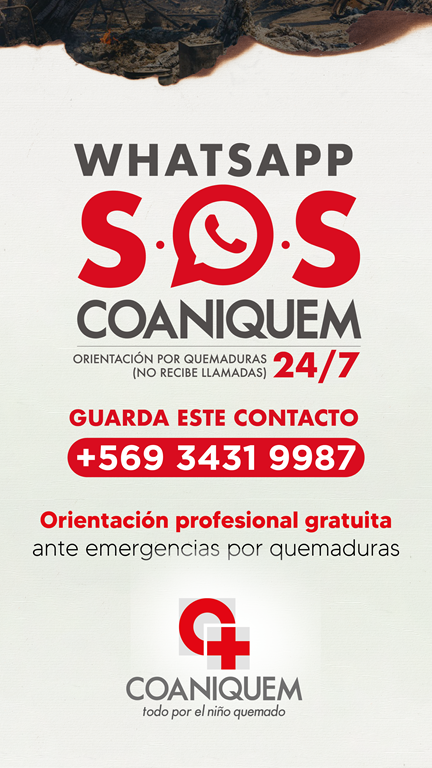 Ante cualquier duda o situación de riesgo, COANIQUEM mantiene activo su WhatsApp SOS COANIQUEM, canal de orientación gratuita y permanente para quemaduras, disponible las 24 horas, todos los días, en el número +56 9 3431 9987 (solo mensajes, no recibe llamadas).
